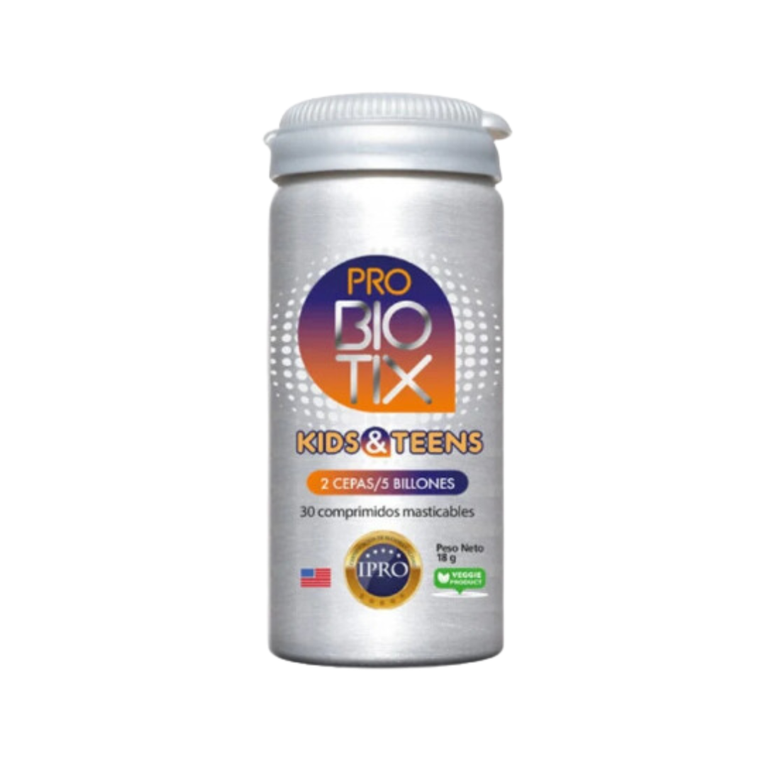 Cada comprimido masticable de ProBiotix Kids&Teens contiene 5 billones de cepas probióticas.